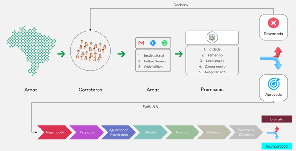 o corretor ou corretora de áreas representa um papel fundamental em nossos negócios, usualmente eles são especialistas em determinada cidade ou região. Nós buscamos desenvolver um forte relacionamento com poucos e bons corretores, pois é importante que eles entendam bem nossas premissas, formatos de pagamento e o que buscamos. Essa curadoria somente é possível quando o corretor acredita em nossa empresa e no que desenvolvemos.