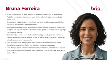 a campanha teve uma participação incrível — 1.647 respostas de clientes — e para incentivar as respostas, realizamos o sorteio de uma TV, um robô aspirador e uma Alexa. A partir das respostas, realizamos uma análise detalhada e criamos três personas brio — representações reais dos nossos diferentes perfis de clientes.