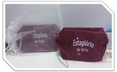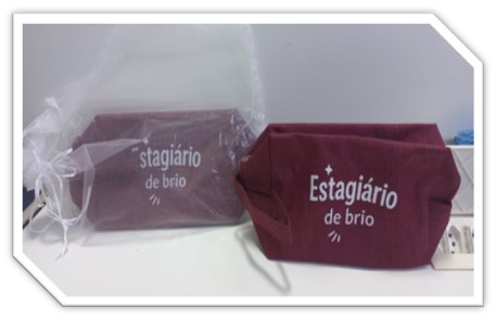 também celebramos o Dia do Estagiário, entregando uma nécessaire. A área escreveu uma mensagem no cartão e publicamos vídeos de colaboradores que entraram na brio como estagiários e vêm crescendo na empresa!