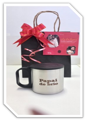 tivemos a ação do Dia dos Pais, que contou com um template com as fotos dos papais da brio, além de uma caneca super fofa e um cartão com uma mensagem especial.