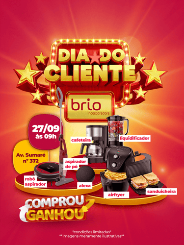 em comemoração ao dia do cliente, realizamos duas ações para eles comemorarem esta data com a gente! O Mês e o Dia do Cliente. Durante todo o mês de Setembro tínhamos condições especiais para todos que conquistassem seu futuro lar! Além disso, dia 27/09 todos aqueles que comprassem seus imóveis participavam do nosso “Show de Prêmios” e podiam garantir um prêmio incrível pra fazer parte da sua nova casa
