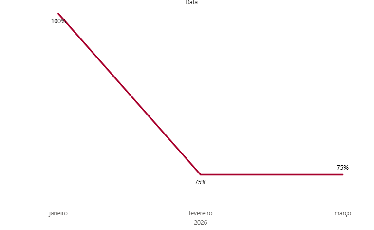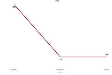 Em São Paulo, a participação do time de Marketing em vendas apresentou participação de 100% nas vendas do time interno em janeiro, 75% em fevereiro e 75% em março.